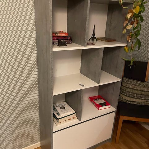 Fint skick bortsett från små skrapmärken på två av hyllplanen, ett hyllplan per bokhylla. Annars fina! Syns bara vid nära anblick.