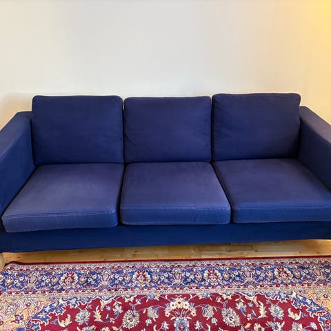 Fin soffa men med slitage från katt, se bilder. Nackkudde som går att höja och sänka ingår.