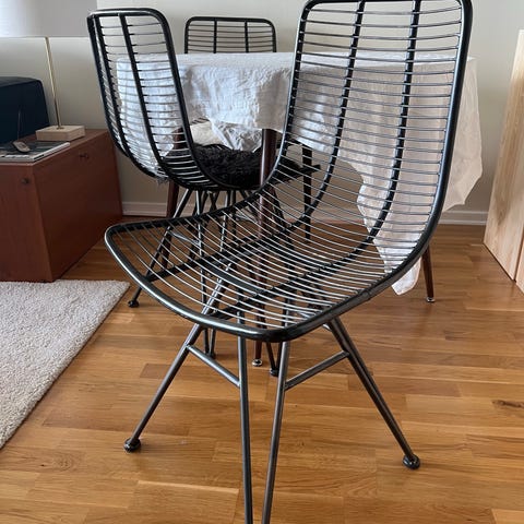 En av stolarna är trasig på sitsen (se bild) så den åker med gratis hem till dig och du lägger en snygg dyna ovanpå eller så kör vi den till tippen 🙂