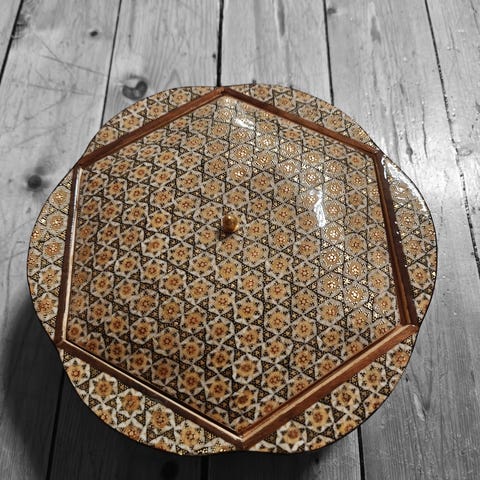 En ask i antik stil i metall. Fin bevarad. Passar perfekt för smycken och annat dint och väderförhållanden. Mått 18x13 cm. Väger 980 gr.