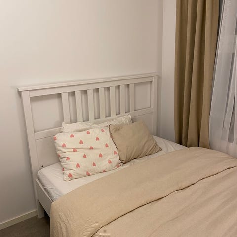 I'm selling my white 140x200cm Malm bed. I bought it new in autumn 2024 (for 2400sek) and I disassembled it once since then. The frame is in very good condition, see pictures.