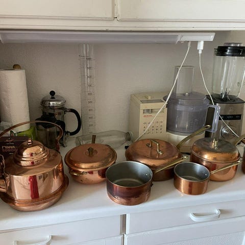 Fondue gryta i koppar med brännare och fyra spett.