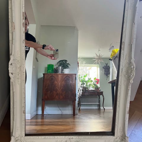 Spegel med guldram och dekorativ kant från Lund - charmig!
