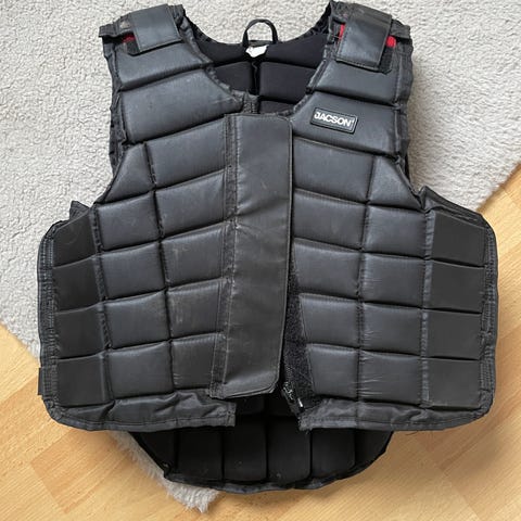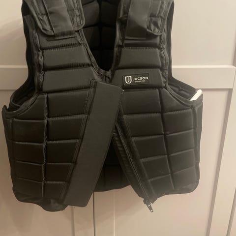 Jacson Junior ridväst i storlek för 10 år, svart färg. Västen är vadderad och designad för att ge skydd vid ridning. Materialet är slitstarkt och anpassat för barn i junioråldern.