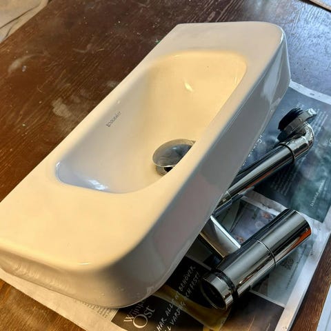 Ett litet och kompakt handfat i porslin säljes, Se bilder för mått. Handfatet är i fint skick.
