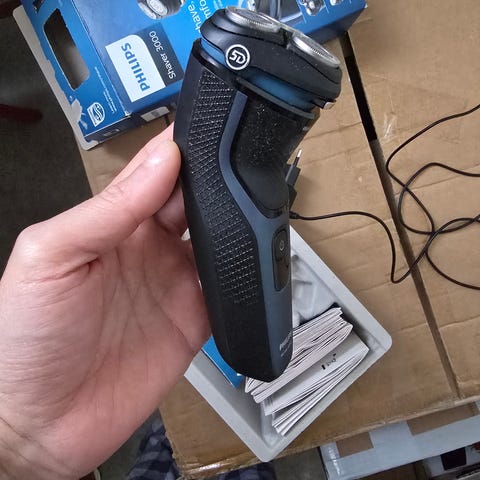 Oanvänd och i plomberad förpackning. Philips Head Shaver Pro 9000 (HS9980/15). IPX7 vattentålighet, medföljande skyddskåpa, rengöringsstation, resefodral, spegel, ersättningsrakblad, USB-A laddkabel (nätadapter ingår ej).