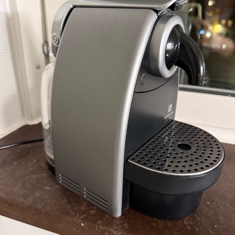 Som rubriken lyder, espresso vartsomhelst - närsomhelst (nästan)! Komplett och i bra skick, inga skador. Fullt fungerande. Fyll på med kokande vatten i behållaren nedtill, ladda med en Nespresso orginalkapsel eller liknande alternativt malet kaffe i den andra delen. Den går alltså använda på både kapslar och malet kaffe.
