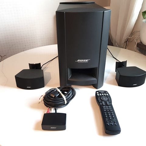 Bose CineMate GS series 2, digitalt hemmabiosystem. Systemet inkluderar subwoofer, satellithögtalare och fjärrkontroll. Utformad för hemmaljud.
