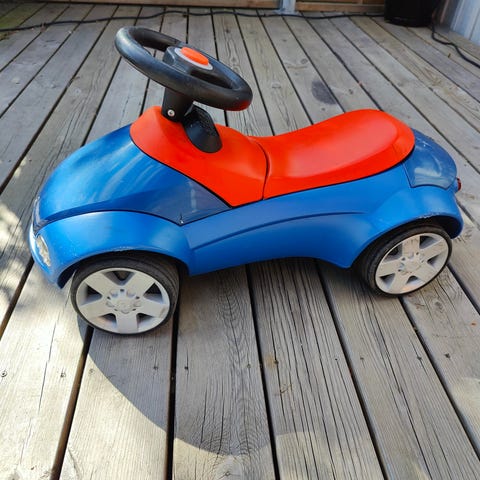 Säljer en BMW sparkbil där man får Spidey sparkbil på köpet.