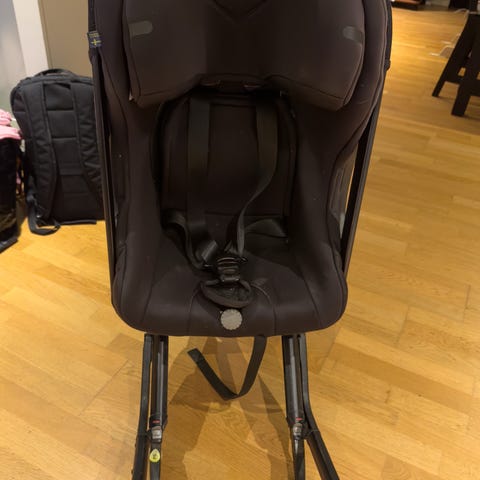 Den bästa bakåtvända bilstol vi haft – barnet sitter mycket bekvämt och säkert. Enkelt att justera både benutrymme och nackstöd medan barnet sitter i stolen.