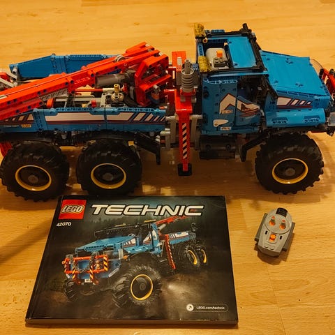 LEGO Technic radiostyrd terrängbil med larvfötter och fjärrkontroll. Modellnummer: 42065. Komplett set med beskrivning, tyvärr utan kartong.