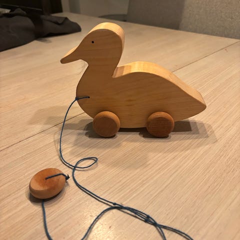 Kreativ träflygplan leksak tillverkad i trämaterial. Designad som en modell av ett flygplan med propeller och flera fönster. Passar som dekorationsobjekt eller leksak för barn.