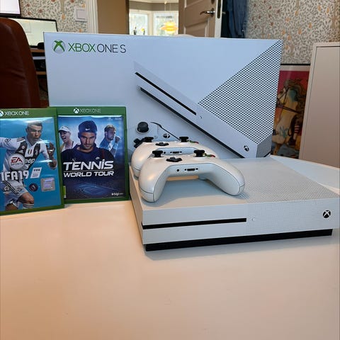 Microsoft Xbox One S Spelkonsol vit med två kontroller