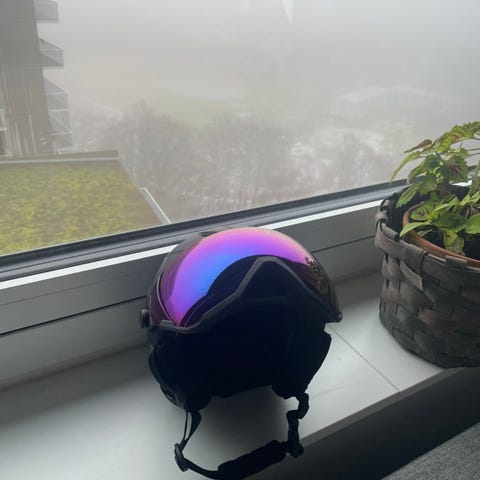 Modell Aspect, låg vikt. Ventiler i hjälmen, reglera storleken i nacken 59-63. Googels med två linser, dimma och sol.