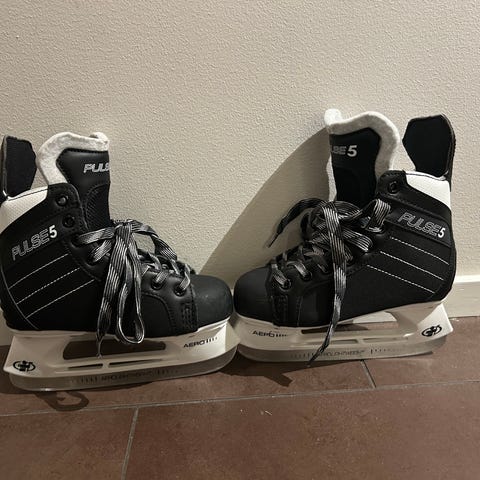Pulse Iceskate Ishockeyskridskor i barnstorlek 37, innerstorlek 24,3 cm. Skridskorna är svarta med blå detaljer. Modellen är utformad för att passa barn och är tillverkad med material som ger stöd och komfort vid skridskoåkning.