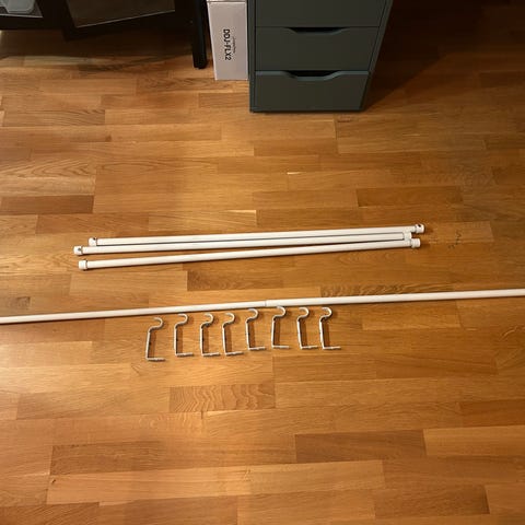Gardinstång i vit färg med justerbar längd 220-380 cm, ⌀ 28mm. Tillverkad i metall. Knappt använd!
