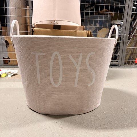 Förvaringskorg för leksaker ca 40 cm hög, i fint skick. Från djur- och rökfritt hem.
