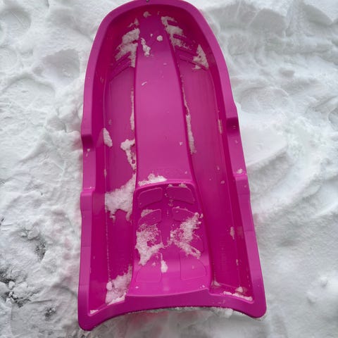 Stiga barnpulkor i rosa färg. Tillverkade i plastmaterial. Passar för barnlek i snö. Sparsamt använda. Båda för 200 kr eller en för 150 kr.
