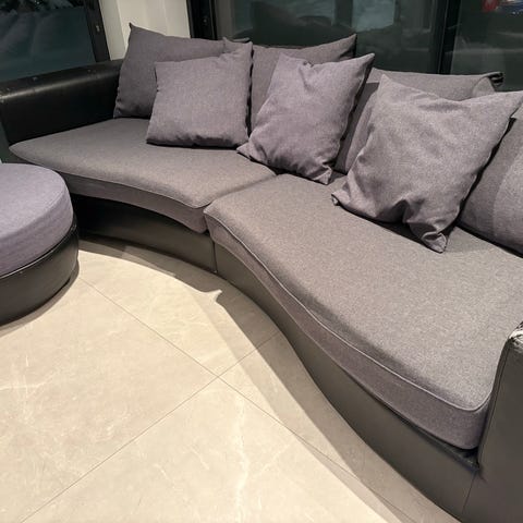 Stor mörkgrå soffa med divan