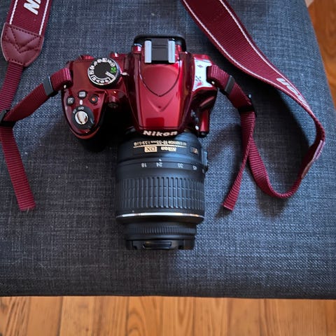 Nikon D5200 digital systemkamera med 18-105 mm VR-objektiv. Kameran är avsedd för fotografering med utbytbar optik och har funktioner för att hantera olika fotograferingssituationer.