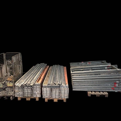 Konsol för ramställning, användbar för att stödja och säkra byggnadsställningar. Tillverkad av metall för hållbarhet och stabilitet vid bygg- och reparationsarbeten.