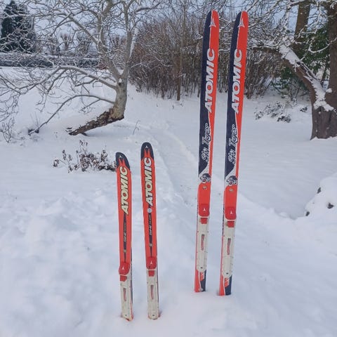 Längsskidspaket för barn / junior med skidor och stavar från Edsbyn. Skidor är 120 cm långa och stavarna 90 cm.