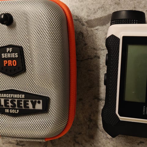 Superfin Bushnell Tour V4 laserkikare med Pinseeker JOLT-teknologi (vibration vid träff på flaggan), 5x förstoring och en klar LCD Display, avståndsmätning från 5-915 meter, samt en eftermonterad magnet på baksidan för fäste på golfbil eller dylikt.