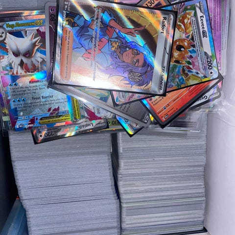 En samling av Pokémon samlarkort med olika motiv och karaktärer. Kortens storlek och material följer standardformat för samlarkort. Passar för samlare och spelare av Pokémon kortspel.