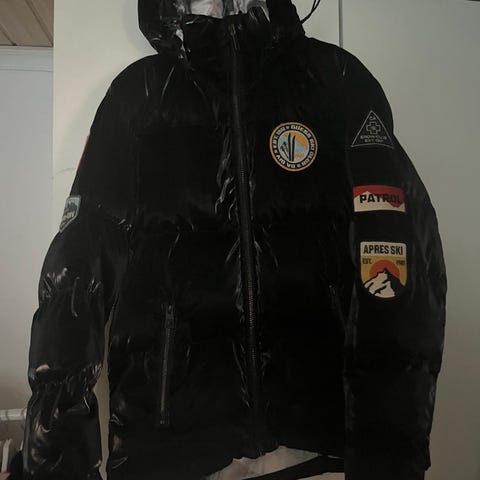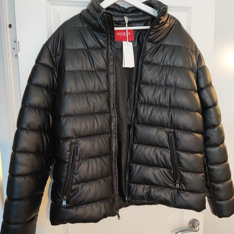 GUESS Jacka i storlek L för herrar, färg olivgrön. Varm, tjock Dunjacka med krage. Dubbla innerfickor, bra dragkedja. Kvalitetsplagg.