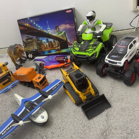 75 fordon, mest bilar men även lastbilar, flygplan, traktorer, lastbilar och motorcyklar säljes. De flesta bilarna är gamla och har lekts mycket med.