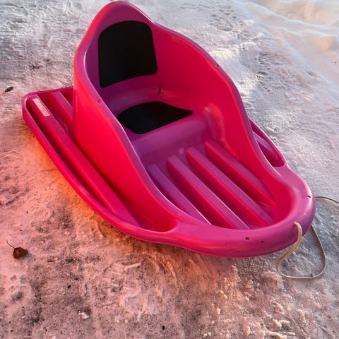 Stiga barnpulka tillverkad i svart plast. Pulkan har en sittdel med ryggstöd och ett fastspänningsband för säker användning. Utformad för barn och passar för vinterlek i snö.