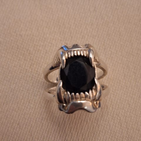 Säljer denna otroliga ring från Maria Nilsdotter. Modellen heter Pierced Leo Ring och säljs inte längre, vilket gör den extra exklusiv och svår att få tag på. Ringen är i silver med detaljer i 18K guld och prydd med orange safirer och svarta spineller. Storleken är 17 mm och ytterkartong medföljer. Nyvärdet är 4 595 kr. Ringen är i bra skick. Den andra bilden är tagen från internet.