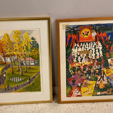 Inramat grafiskt tryck (träsnitt/linoleumsnitt).