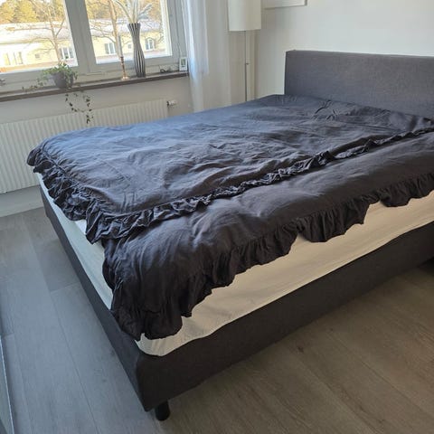 Grå sänggavel från Mio ingår.