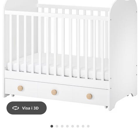 Det ingår madrass, madrasskyd, spjälskydd och dra på lakan, spjälsängen är i mycket bra skick och knappt använd. Finns lite lack avskrapat pga dottern gnuggat på räcket. Man kan se det på bild. Spjälsängen kan monteras ner om så önskas, bruksanvisning följer med!