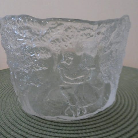 Jättefin ljusstake i glas. Stor bumling - den väger en bit över 900 gram. Oregelbunden form, lite som en trädstam.