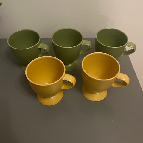 4 st koppar, fat och assietter.
