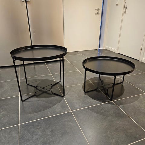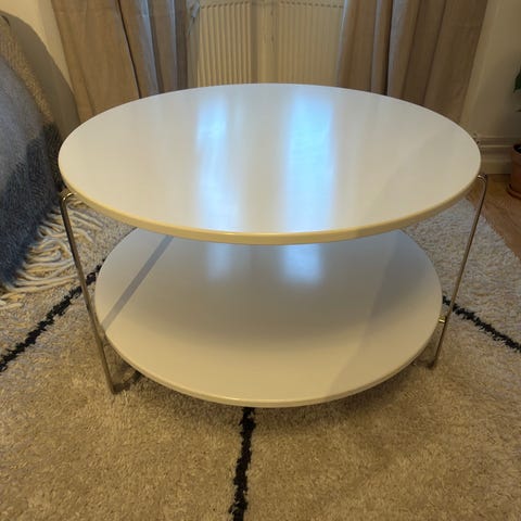 Ett runt sidobord i metall/glas och gulddetaljer, med två separata avlastningsytor. Små märken på översta glasskivan samt på fötterna finns. Nypris 800kr, säljes för 300kr eller högstbjudande. Hämtas i Karlstad och betalas med Swish. Hund finns i hemmet.