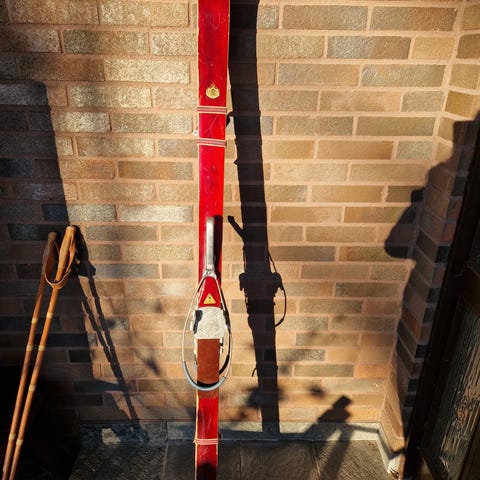 Dessa coola reklamskidor från Coca Cola / OS i Lillehammer 1994 vann min far på slogantävlingar, vilket butikerna var fulla av på den tiden. De är som synes inte av modernaste snitt, men har funkat fint att åka på.