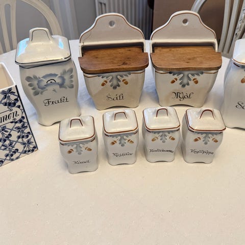 Vintage porslinsburkar för kryddor och marmelad