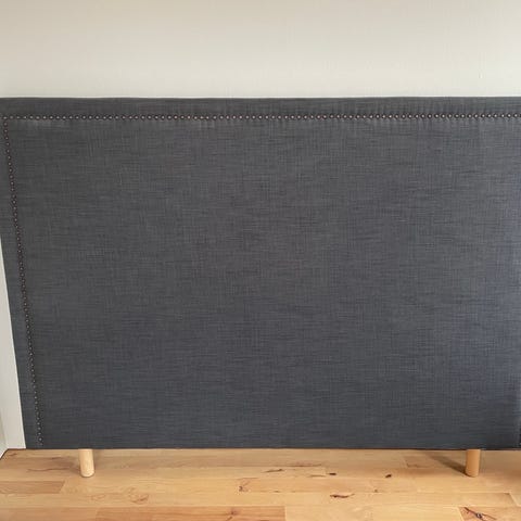 Sänggavel i fint skick. Gaveln kan stå med eller utan medföljande gavelben (12 cm höga), eller hängas upp på vägg med nyckelhålsbeslag på gavelns baksida.