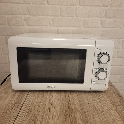 Whirlpool Mikrovågsugn i svart färg med glasvred och roterande tallrik. Passar för uppvärmning och tillagning av mat.