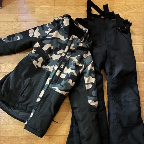 Jacka och byxa från märket cross, sparsamt använda en säsong, mest för pulkaåkning.