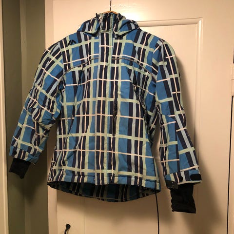 Jackan saknar ena kardborren på höger arm för att dra åt runt handen, men påverkar inte funktionen alls.