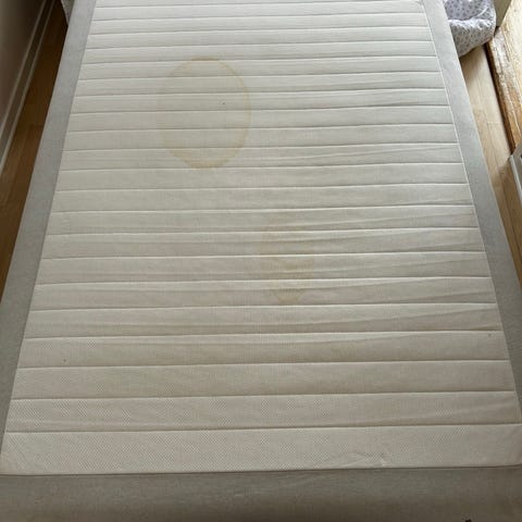 Det är samma med madrassen. Vi har kvar den ifall någon är i behov av en, men den är helt ärlig ganska sliten. Men om det behövs så kan den absolut följa med på köpet.