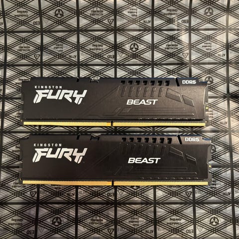 Säljes ett par nya Kingston 64GB (2x32GB) DDR5 6000MHz CL30 FURY Beast RGB Svart AMD EXPO/XMP 3.0 som kom med i en prebuild till en släktings julklapp PC men räckte med 16GB för honom.