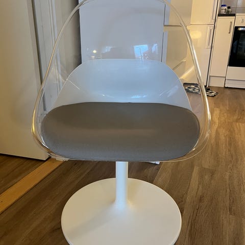 Säljer en IKEA Bleckberget skrivbordssto då den inte kommer till användning. Mörklila, höj och sänkbart, snurrfunktion samt med hjul, stolen är i väldigt bra skick och fungerar som den ska.