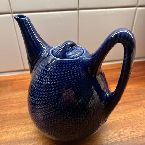 En Kaffe/Te-kanna i blått med lock, ur Blå Eld, Hertha Bengtson, Rörstrand Nr3
