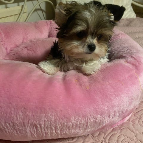 Min pappa är Chihuahua och min mamma är blndad 68%Pomeranian och 32% chihuahua, så jag är en söt liten blandning 🥰