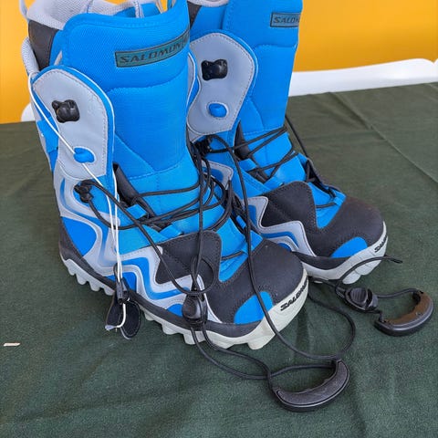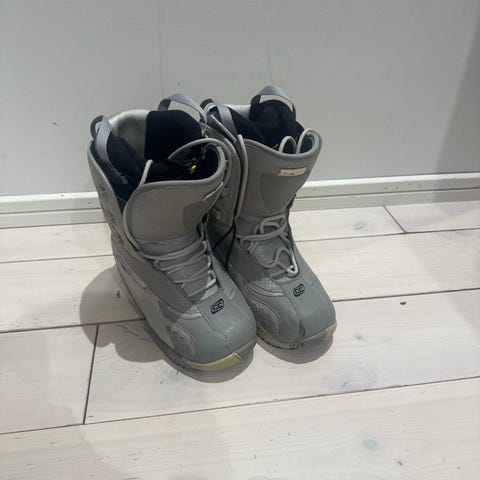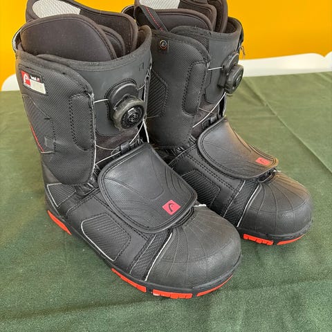 Röd/blå skorna har kombination av snörning, boa och kardborre. Riktigt skön och stabil snowboardsko med justeringsmöjligheter även på innerskon. Storlek 26,5 cm. Pris 850